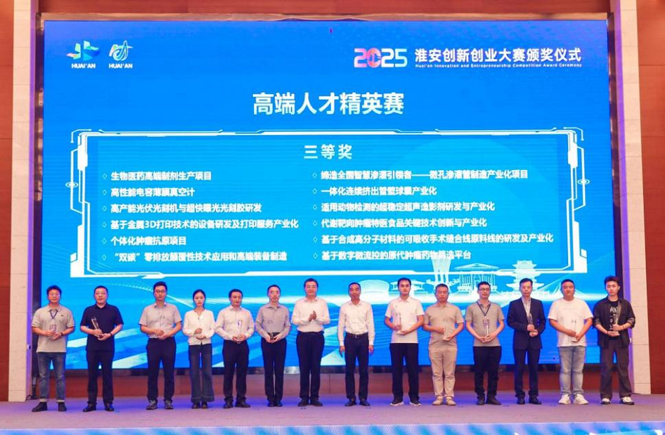 9月19日,在2025年淮安創(chuàng)新創(chuàng)業(yè)大賽中,集團在管基金投資的“新一代高頻射頻數(shù)?;旌霞呻娐讽椖?/span>”和“代謝靶向腫瘤特醫(yī)食品關(guān)鍵技術(shù)創(chuàng)新與產(chǎn)業(yè)化項目”分別榮獲高端人才精英賽一等獎和三等獎,兩個項目重點聚焦通訊科技和特別醫(yī)療領(lǐng)域,目前已在淮安落地生產(chǎn)。